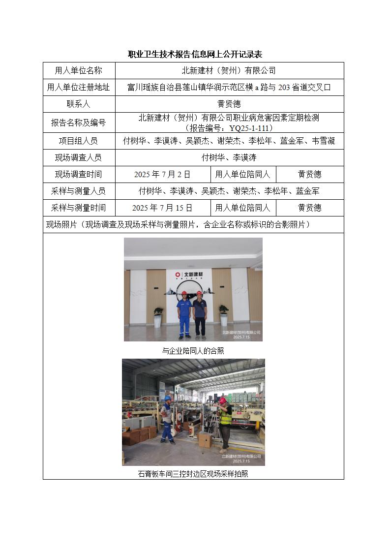 北新建材(賀州)有限公司職業(yè)病危害因素定期檢測(cè)