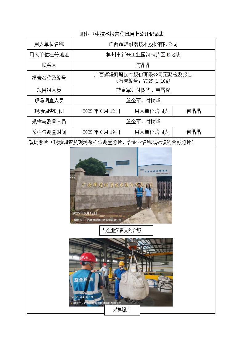 廣西輝煌耐磨技術(shù)股份有限公司定期檢測報告